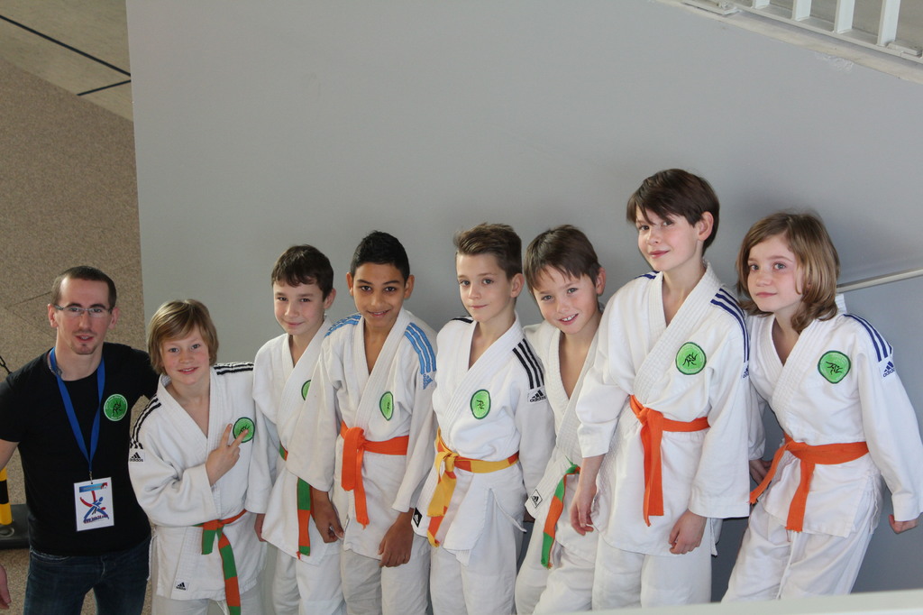 Dans l'équipe, seul Yanis connaissait déjà les arcanes des compétitions officielles. Cela n'a pas empêché nos benjamins de gagner leur première rencontre (contre le GUC JCG). Une partie serrée car il y avait égalité parfaite à la fin des combats et le tirage au sort a désigné la catégorie de Louis pour donner la victoire à notre équipe.